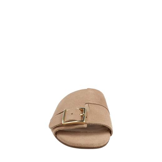 CIABATTINA CON NODONE DI FASCETTE IN PELLE A TAGLIO VIVO, SOTTOPIEDE IN MORBIDA PELLE